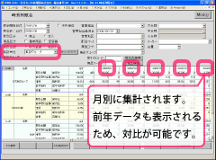 ハードディスクに余裕がある限り3年~5年の過去データが蓄積できますので、今年対前年、前年対前々年など、1年ごとの前年対比が可能です。